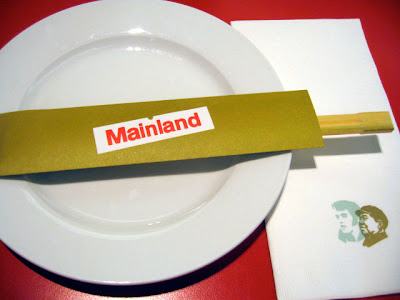 While in Vegas, I checked out the recently opened Palazzo Hotel. The shopping center part is connected to the Venetian’s Grand Canal Shops via a brand spankin’ new Barney’s New York store. The Barney’s store there is huge, fabulous, and gorgeous. Of course all that walking and (window) shopping can make ya hungry, so I checked out Mainland, a fun restaurant that’s all about noodles. Here’s a link to an interview with the creator of it.