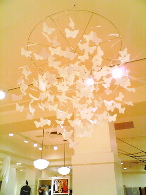 I saw this butterfly chandelier/mobile at Pottery Barn Kids the other day. It was so pretty and uplifting. Even though it was for kids, I could see this working in an adult setting as well, perhaps above a dining table. Could be a fantastic decorating idea for a party too- (the holidays are coming up!) I think if you felt crafty enough, you could easily DIY this, maybe with different shaped elements thrown in, or different papers… but if not, you can get it here.