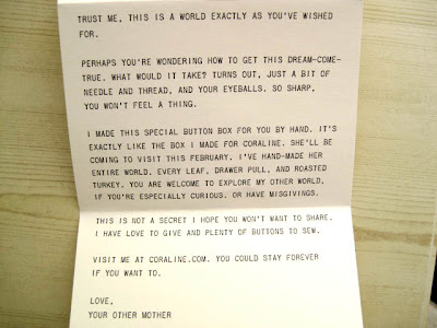 I’ve previously mentioned how excited I am to see the new movie Coraline. It finally comes out tomorrow! woo hoo! Over the holidays, I received this awesome creepy little box (above).