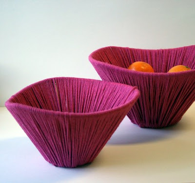 Here’s a little “treat“- Camilla transforms old lampshade frames and uses cotton yarns to make beautiful bowls (she calls them “Treat”.