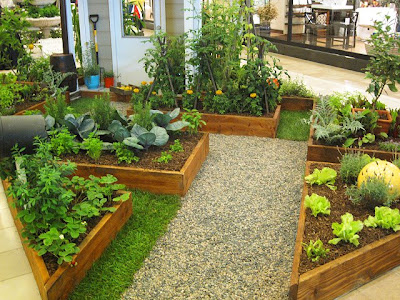 I checked out the Spring Garden Show the other weekend- One of the exhibits that really caught my eye was this “victory garden.” It was created by Annie Hall, who teaches at Saddleback College, with the help of her horticulture and design students. I love how all the raised boxes are at different angles and how they divided up the space and included the pathway. I also like how they integrated pots inside the flower beds.