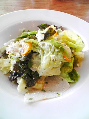 Also had the Jicama and kumquat salad. Of course couldn’t pass up desert, sticky date pudding with ice cream! and I already mentioned the simple bottles for water and tea. Another thing I loved was the use of simple dish towels as napkins. They were just white with an aqua stripe down the middle. The one thing I regret not being able to photograph was Linda, this older campy, eclectic, and totally fabulous lady that greets everyone and sits them at the table. Her outfits alone are worth a visit, and apparently she sings too- (sadly we weren’t able to witness a performance.)
