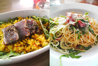 This time, tried the spaghettini, which had prosciutto and lemon, and the Chermoula marinated tuna, that had citrus tumeric couscous underneath.