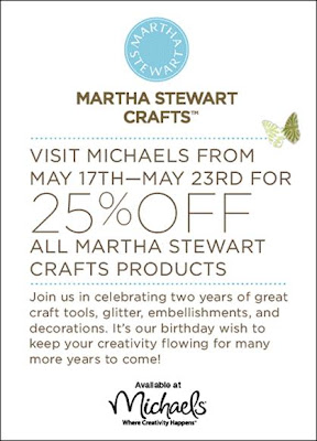If you’ve been itching to do some crafting, (perhaps this long weekend?) swing by Michaels– Martha Crafts are on sale now through this Saturday May 23, 2009-