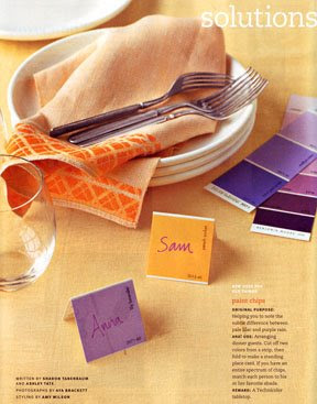 and 3) using paint swatches as place cards for your next dinner party- more ideas in the July 2009 issue of Real Simple- (photos by Aya brackett, styling by amy wilson, from July 09 Real Simple)