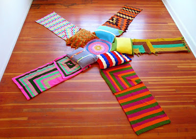 Here’s a bright burst of knitted color! kinda wacky, kinda crazy, kinda LOVE IT! All from Sarah Applebaum.