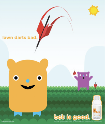 The other day I had to go to Toys R Us to pick up some props for a photoshoot. As I was exiting, I saw that Toys R Us now carries all kinds of food things, like drinks and other random-ness. I guess it’s all for kids, so… whatever- anyway- one thing caught my eye- These Bot Beverages– I’m probably late on this, since apparently it’s been out since last year, but how cute is thepackaging!? It was all designed by TDA, and super kudos to them. I checked out the Bot website and was equally impressed- The tv spots and ads are hilarious and I love the random weird noises these characters make-