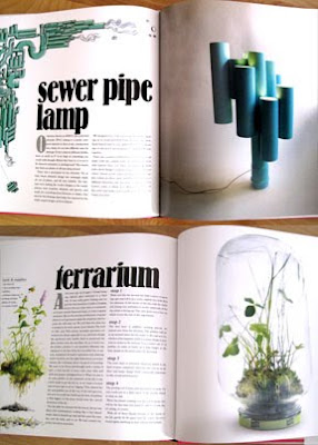 Some of my favorite pieces they show are the sewer pipe lamp and the terrarium out of simple upside down jars. Something anyone could do!