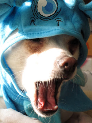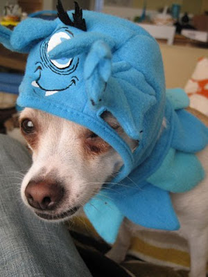 happy halloween! October 31, 2009 Happy Howl-o-ween! from a very scary blue monster Pepé! (Actually, from a very annoyed Pepé who has a dad that dresses him up in silly costumes! hehe)