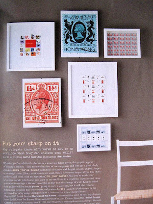Great idea for DIY artwork, as seen in the Nov/Dec 09 Inside Out mag. Frame up some stamps! Love the look of the enlarged ones-