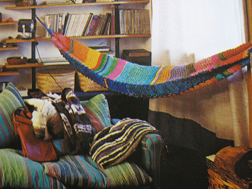Note the great fuschia coffee table! But really, the standout element is that there’s a hammock!