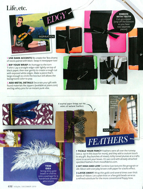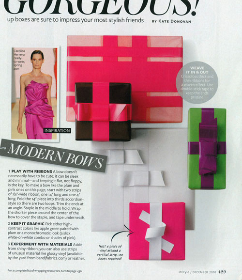 The December 2010 issue of InStyle has some gorgeous gift wrapping ideas inspired by current fashion trends. (more shots after the jump)…