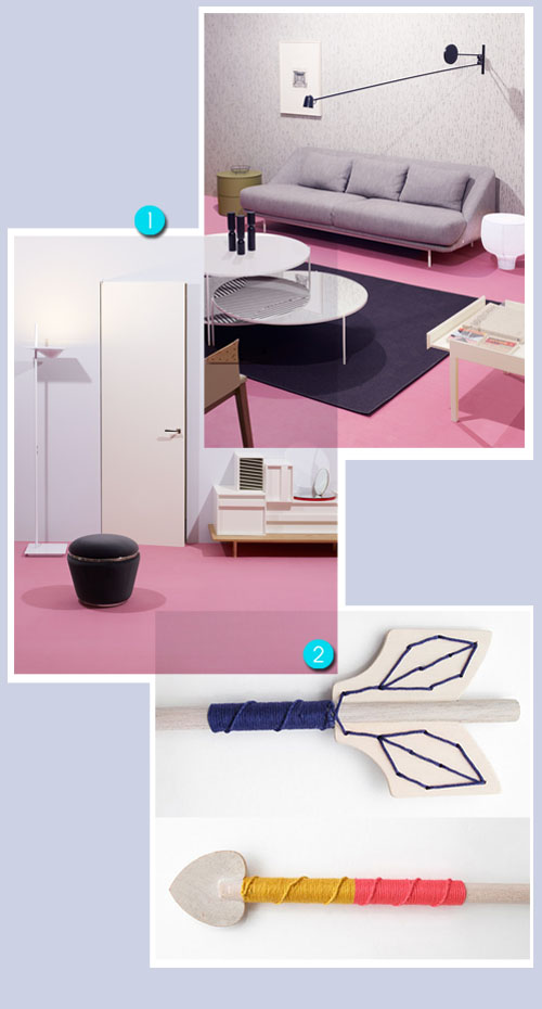 • 1) I’m kind of obsessing over these pink floors in the July 2011 issue of Wallpaper. It’s a color I’d never normally consider, but I’m really drawn to it here! Shot by Leandro Farina, with interiors by Amy Heffernan. It immediately gives me a retro vibe having the pink mixed with the black and gray (that’s not a bad thing!), but also feels fresh with all the accents of olive light wood, and abundance of white.