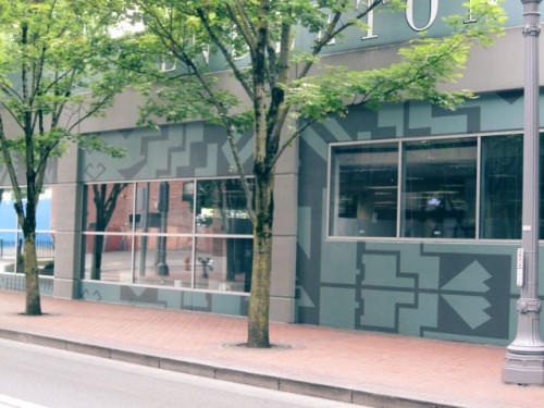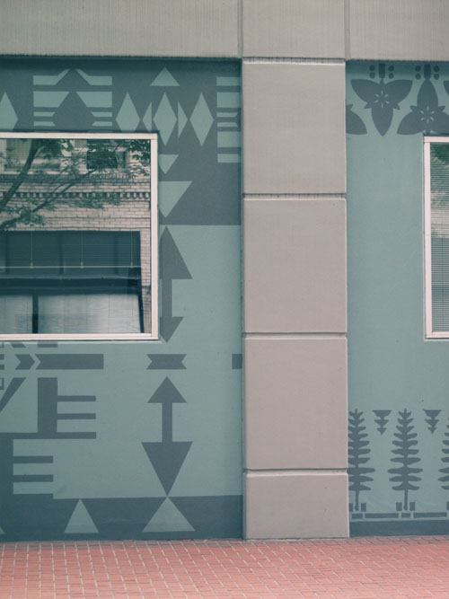 I really appreciated the wall mural graphics on the backside of the Pendelton building in Portland. Could be nice inspiration to liven up a patio? Loved the color combination.