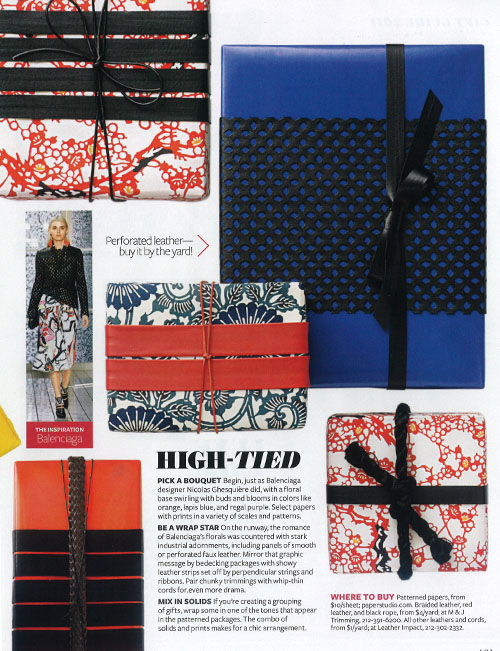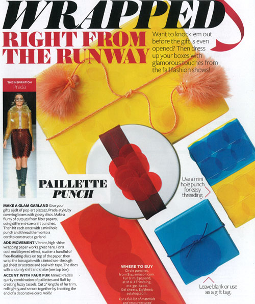Last year, I noticed In-Style magazine had some great gift wrap ideas, and this year they’ve done it again! Great themes inspired by recent looks from the runway to give your gifts some fabulous flare!
