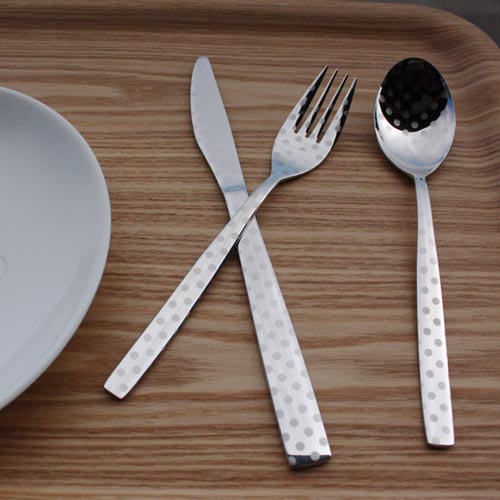 Laser engraved patterns on your cuttlery? Well why not? yes please! (and they come in gold too!) There’s also a houndstooth and plaid as well.