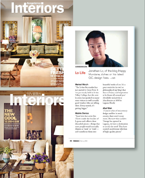 Hey lookee there! Check out my current “obsessions” for Sprint 2012 in the latest issues of Riviera and Angeleno Interiors magazine. It’s on newsstands as well as online. Preview the issue here. My piece is on page 32 (big thanks to Riviera/Angeleno for having me!)