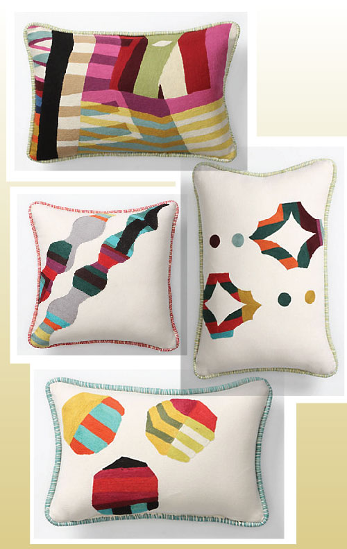 Stuff graphic with texture July 31, 2012 Nice graphic pillows combined with soft fiberous textures… yes please. (Colorfield collage pillows at Anthropologie: here, here, and here)