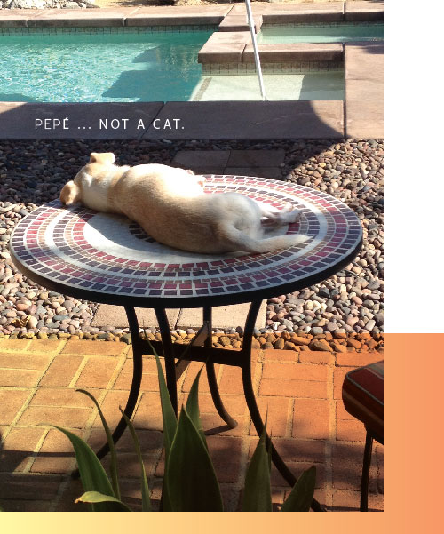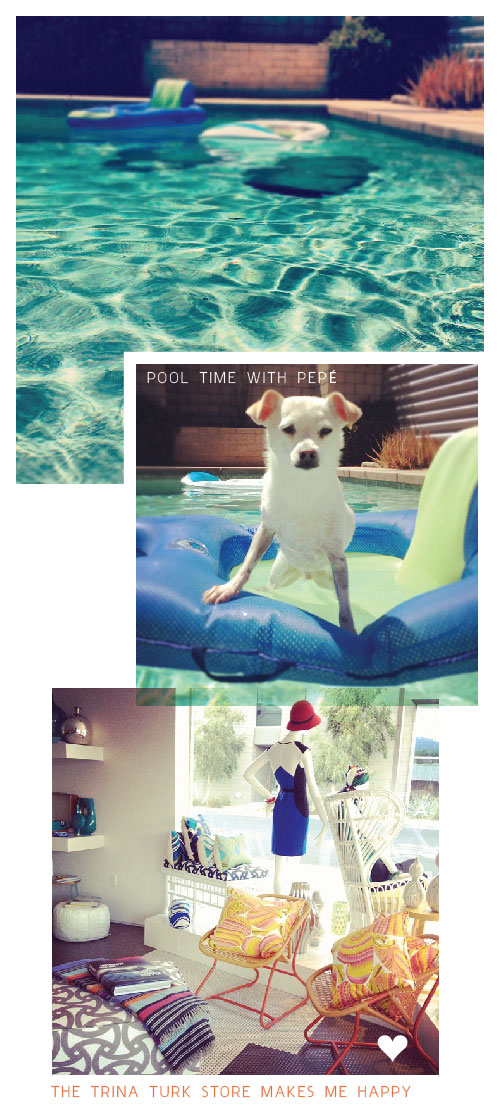 Just ample sun, some mildly scorching temps, a lot of floating in the pool, a little happy time at the Trina Turk Residential store, and some vain attempts at making Pepé a swimming star (not going to happen)…