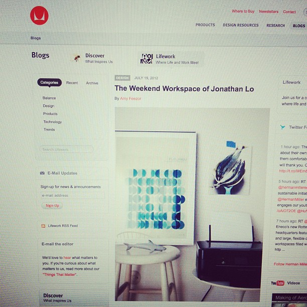 Big thanks to Amy Feezor from the Herman Miller blog for inviting me to share my office with their readers! Check out some more snaps of the workspace that I hang out in when I’m at Project SB over at Herman Miller’s “Lifework” blog.