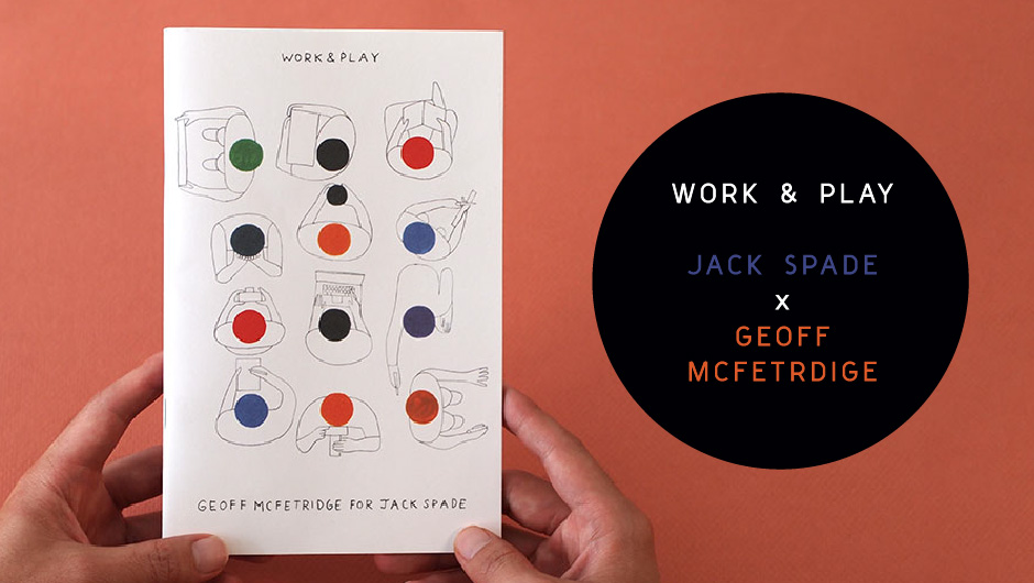 For Fall 2013, Jack Spade has collaborated with artist Geoff Mcfetridge on a limited edition book and pair of t-shirts with the theme of Work & Play. The shirts are available in stores and online, and the books will be included with all online orders, as well as for free in Jack Spade stores. I recently picked one up at the store in Venice, CA. Here’s a peek: