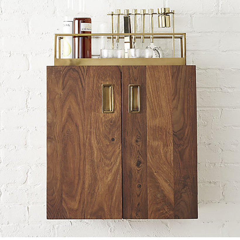 4) If you’re planning on entertaining this summer but are limited on space, this wall mounted bar cabinet from CB2 is all kinds of genius. It even comes with a swanky gold removable tray!